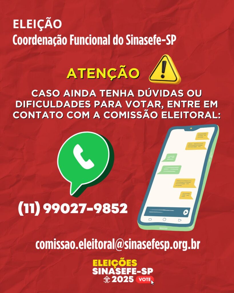 Caso algum servidor ou servidora tenha dúvidas, não consiga acessar o link ou enfrente qualquer dificuldade, a Comissão Eleitoral está disponível para auxiliar durante todo o período de votação.